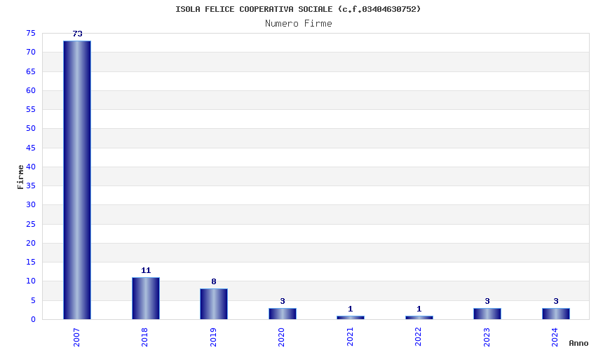 | Anno | Firme | Importi | Media | Naz. | Reg. | Prov. | Comu. |
