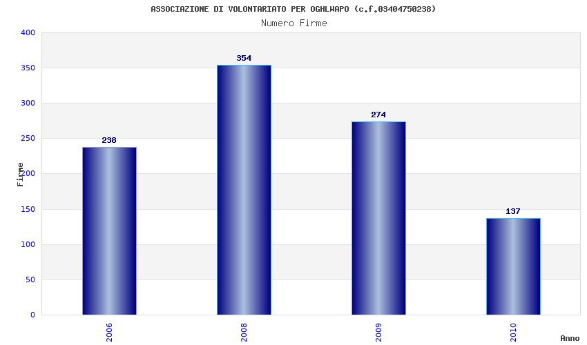 | Anno | Firme | Importi | Media | Naz. | Reg. | Prov. | Comu. |