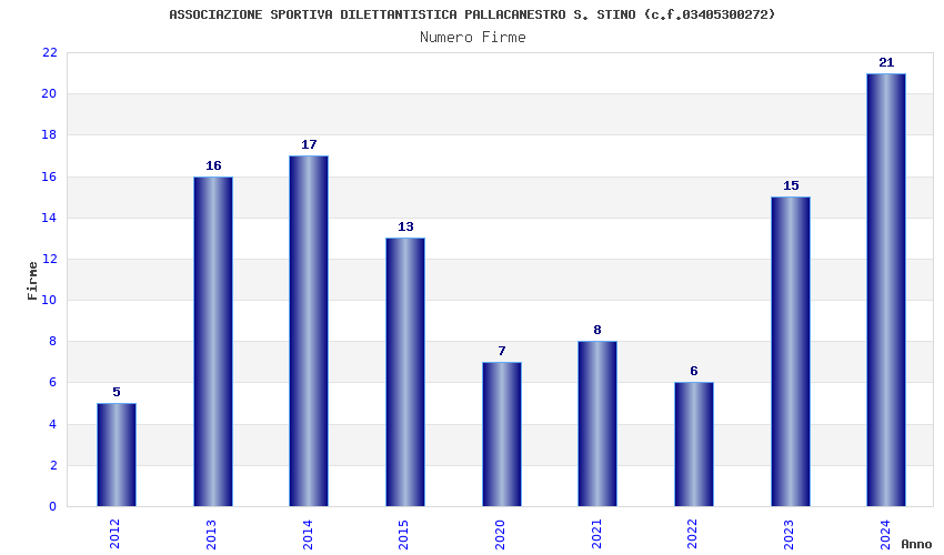 | Anno | Firme | Importi | Media | Naz. | Reg. | Prov. | Comu. |