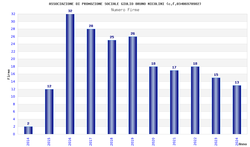 | Anno | Firme | Importi | Media | Naz. | Reg. | Prov. | Comu. |
