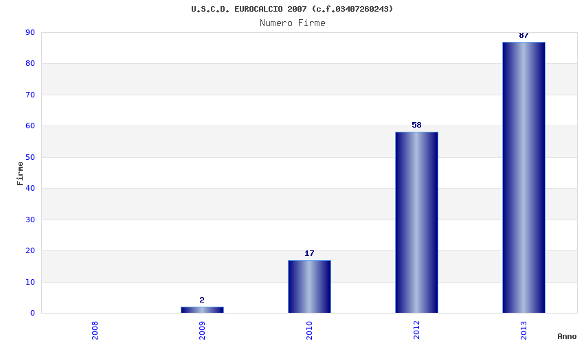 | Anno | Firme | Importi | Media | Naz. | Reg. | Prov. | Comu. |