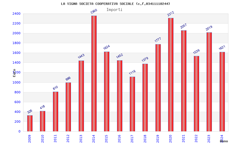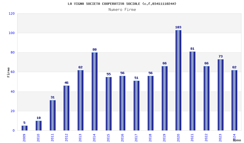 | Anno | Firme | Importi | Media | Naz. | Reg. | Prov. | Comu. |