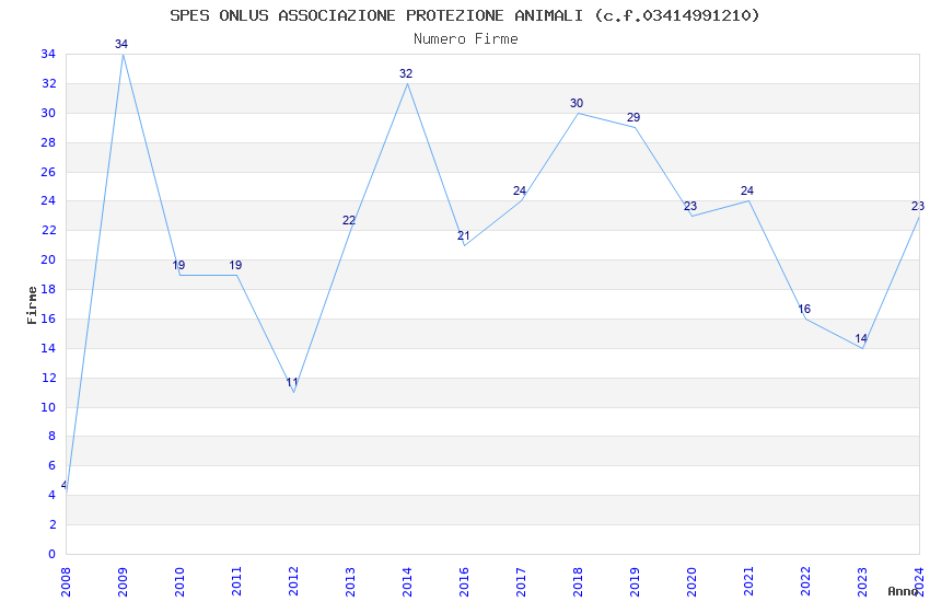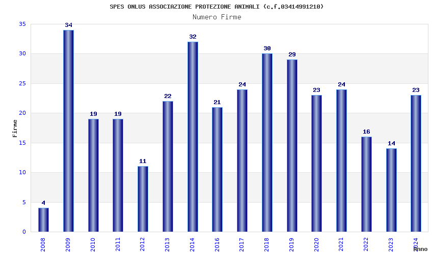 | Anno | Firme | Importi | Media | Naz. | Reg. | Prov. | Comu. |
