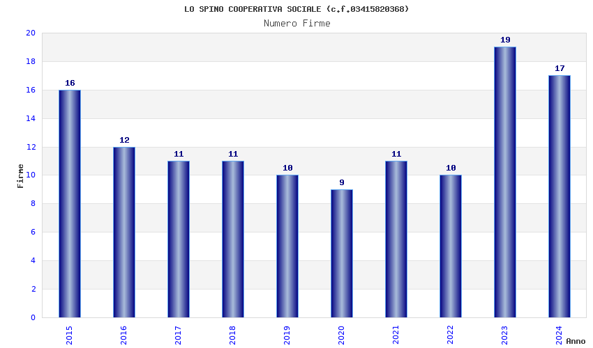 | Anno | Firme | Importi | Media | Naz. | Reg. | Prov. | Comu. |