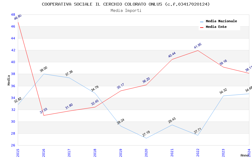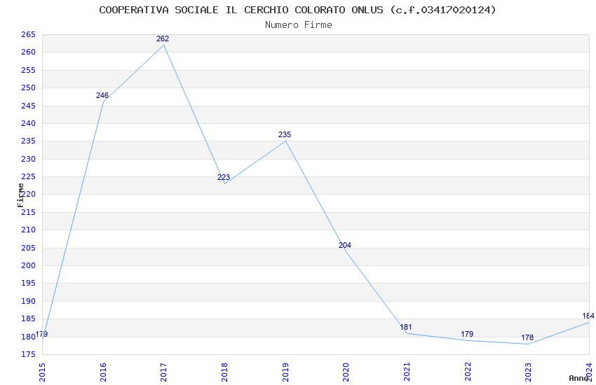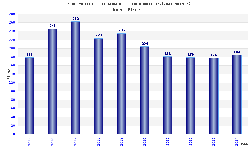 | Anno | Firme | Importi | Media | Naz. | Reg. | Prov. | Comu. |