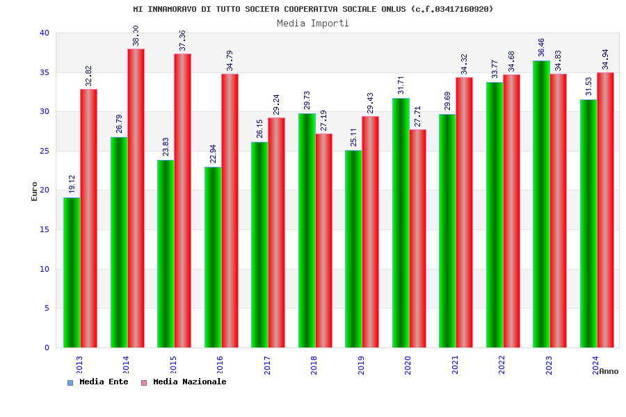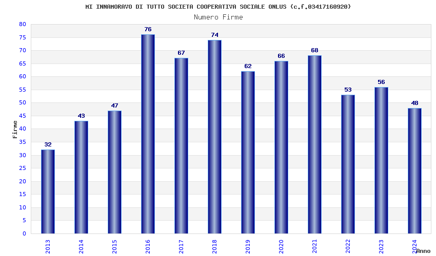 | Anno | Firme | Importi | Media | Naz. | Reg. | Prov. | Comu. |