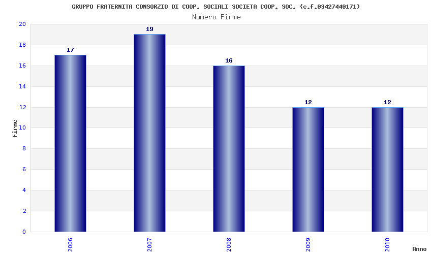| Anno | Firme | Importi | Media | Naz. | Reg. | Prov. | Comu. |