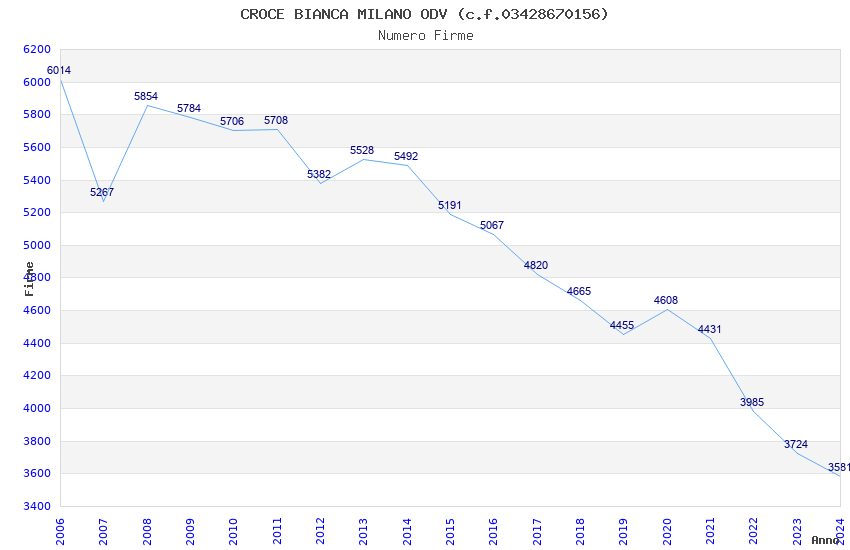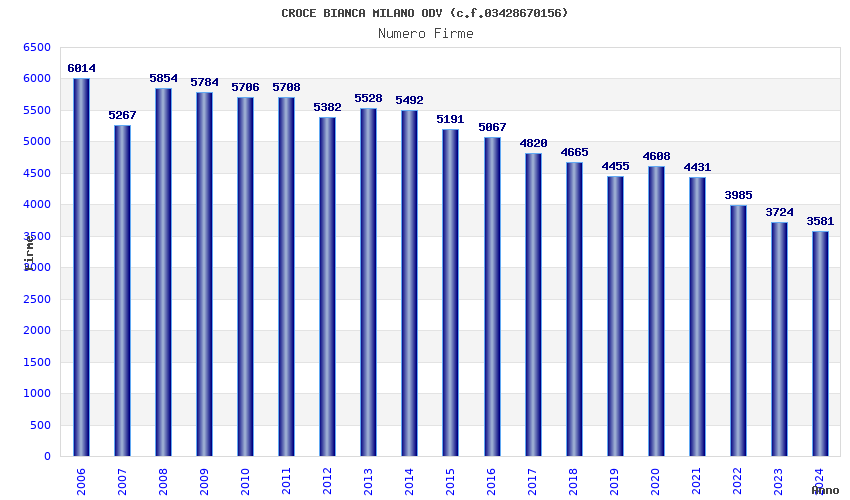 | Anno | Firme | Importi | Media | Naz. | Reg. | Prov. | Comu. |
