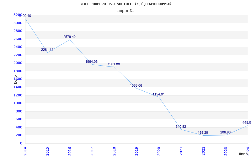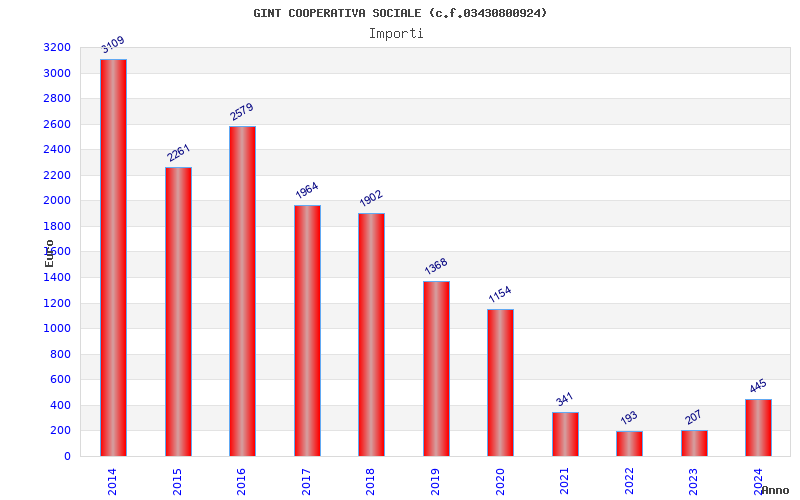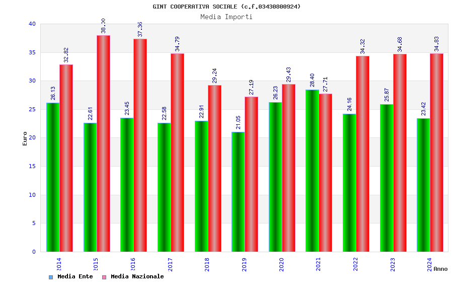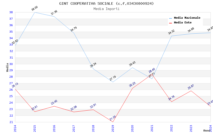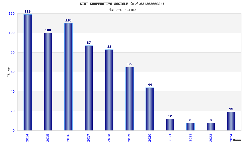 | Anno | Firme | Importi | Media | Naz. | Reg. | Prov. | Comu. |