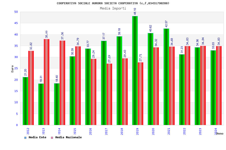 | Anno | Firme | Importi | Media | Naz. | Reg. | Prov. | Comu. |