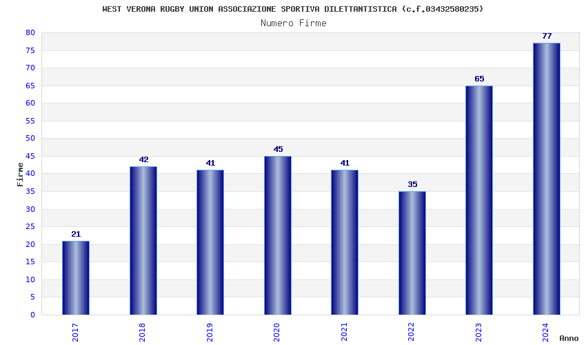 | Anno | Firme | Importi | Media | Naz. | Reg. | Prov. | Comu. |