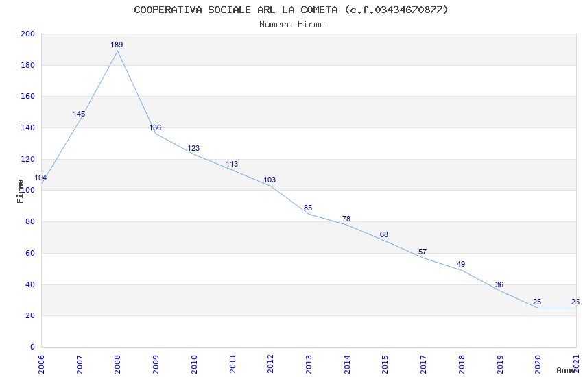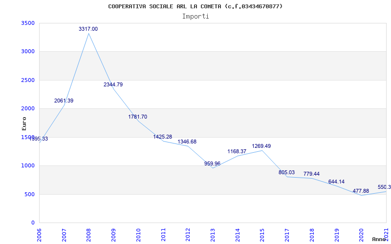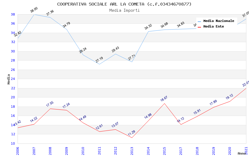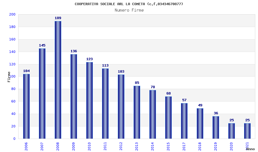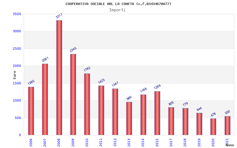 | Anno | Firme | Importi | Media | Naz. | Reg. | Prov. | Comu. |