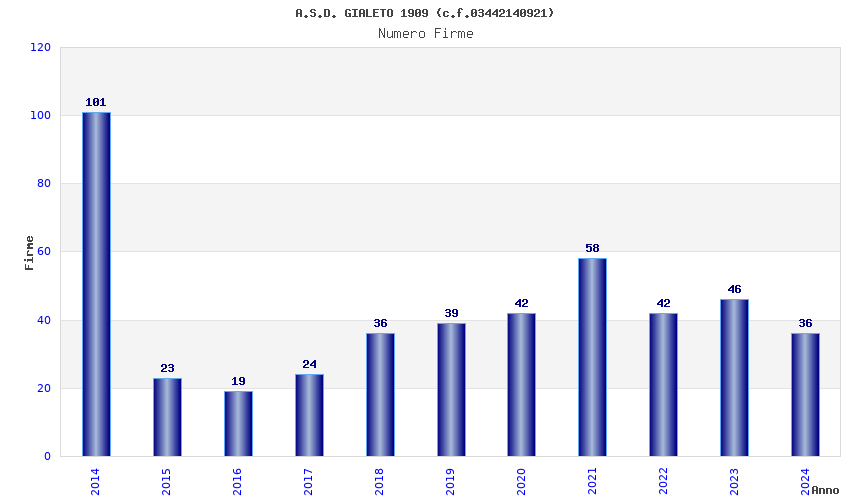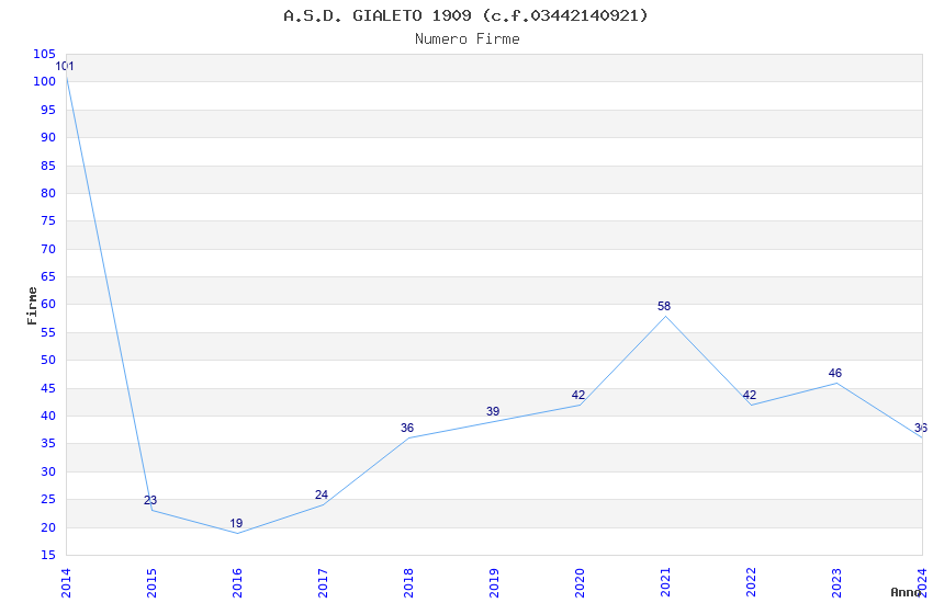 | 2014 | 101 | 2.323,51 | 23,01 | 19.815 | 383 | 55 | 4 |