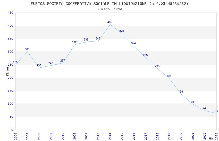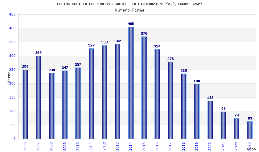| 2014 | 405 | 9.027,75 | 22,29 | 5.840 | 500 | 68 | 4 |