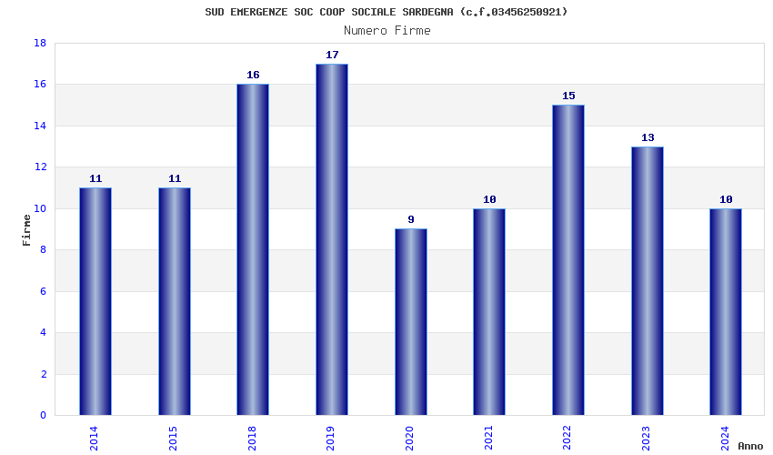 | Anno | Firme | Importi | Media | Naz. | Reg. | Prov. | Comu. |