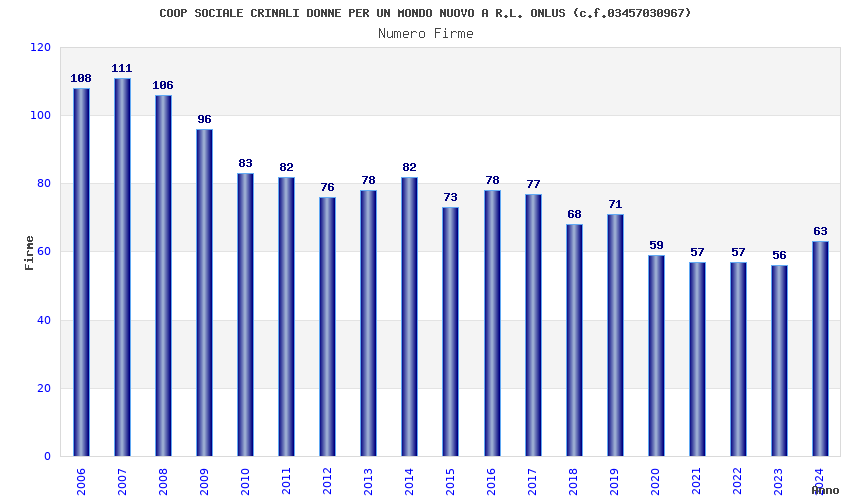 | Anno | Firme | Importi | Media | Naz. | Reg. | Prov. | Comu. |