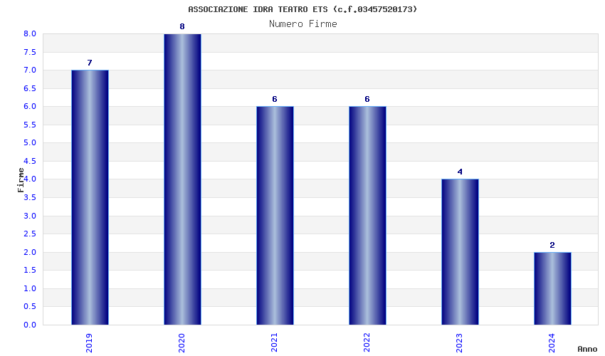 | Anno | Firme | Importi | Media | Naz. | Reg. | Prov. | Comu. |