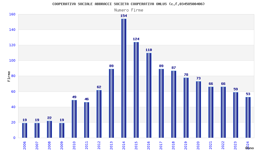 | Anno | Firme | Importi | Media | Naz. | Reg. | Prov. | Comu. |