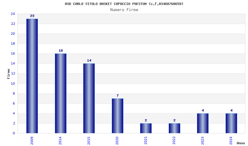 | Anno | Firme | Importi | Media | Naz. | Reg. | Prov. | Comu. |