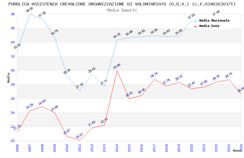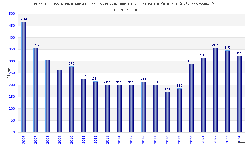 | Anno | Firme | Importi | Media | Naz. | Reg. | Prov. | Comu. |
