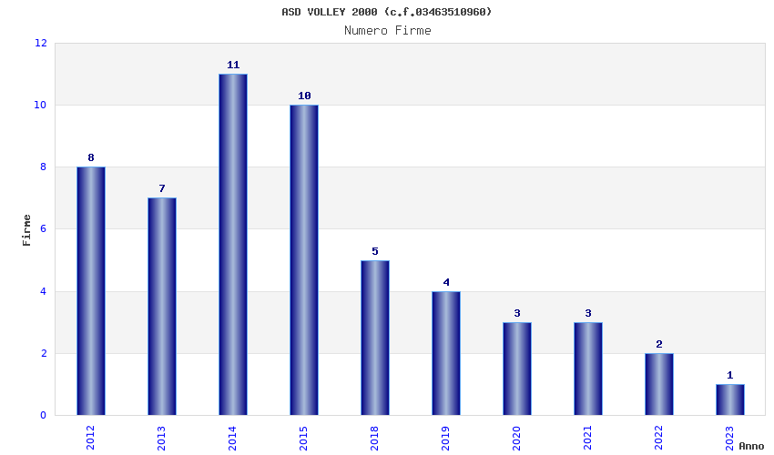 | Anno | Firme | Importi | Media | Naz. | Reg. | Prov. | Comu. |