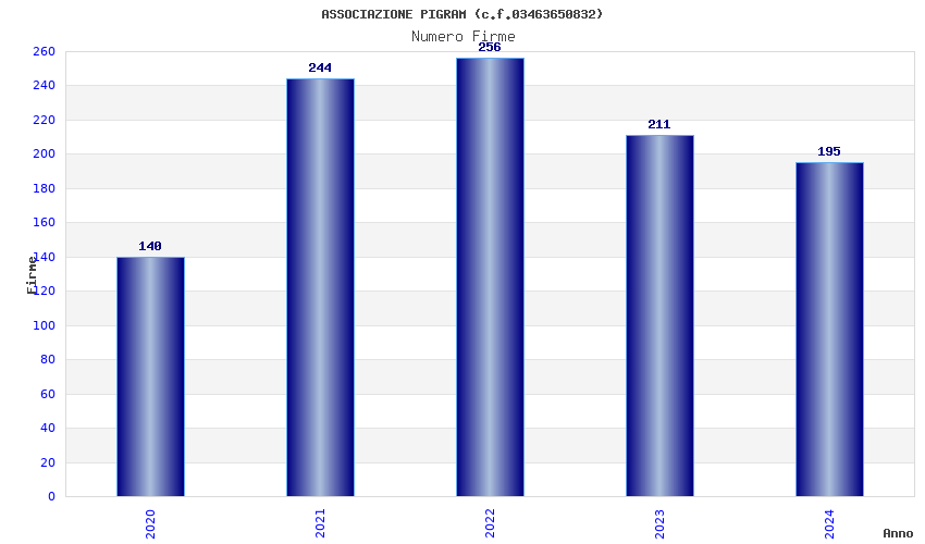 | Anno | Firme | Importi | Media | Naz. | Reg. | Prov. | Comu. |
