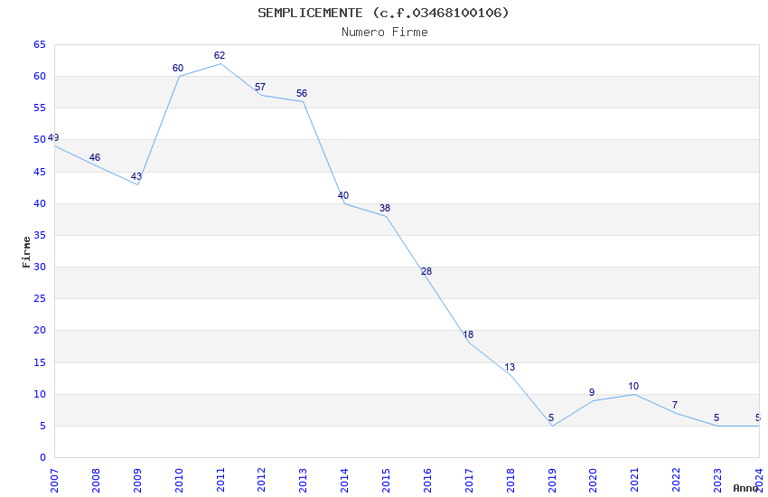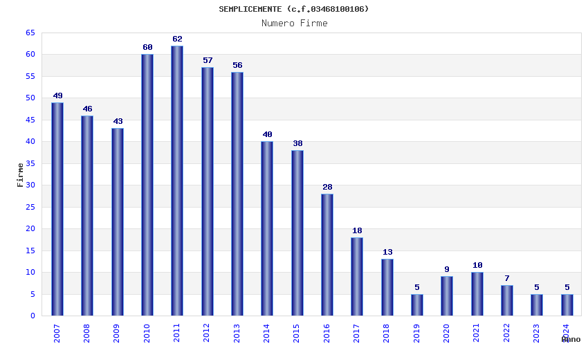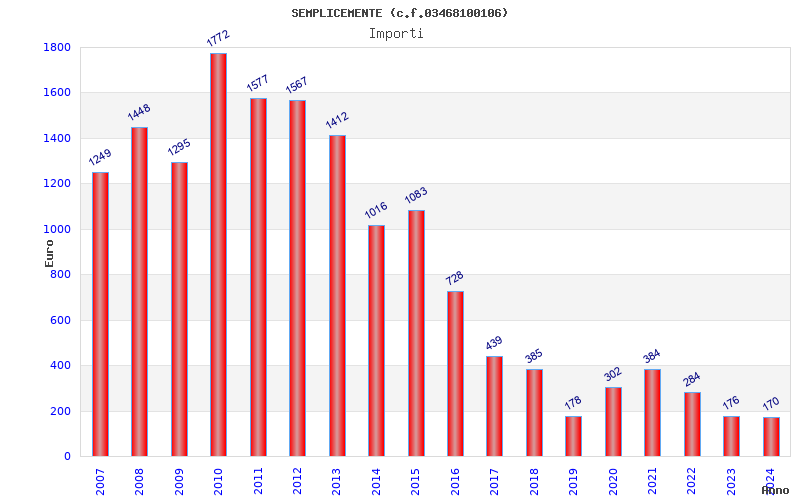 | Anno | Firme | Importi | Media | Naz. | Reg. | Prov. | Comu. |