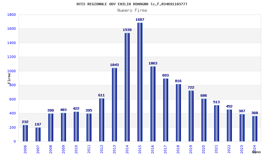 | Anno | Firme | Importi | Media | Naz. | Reg. | Prov. | Comu. |
