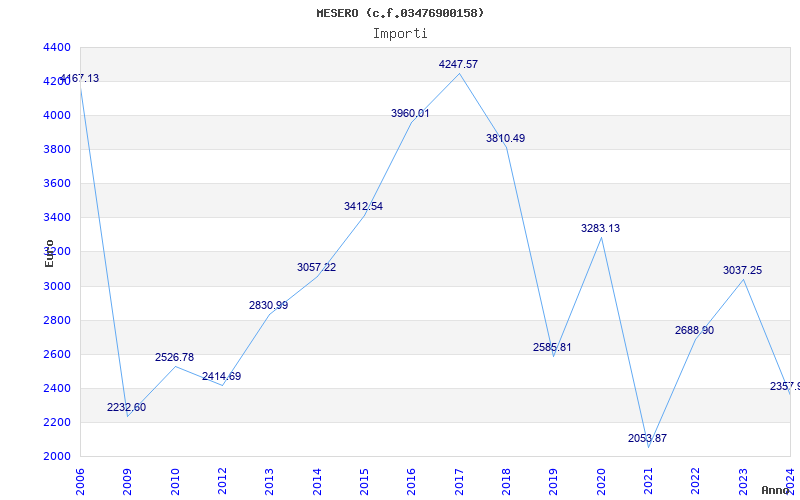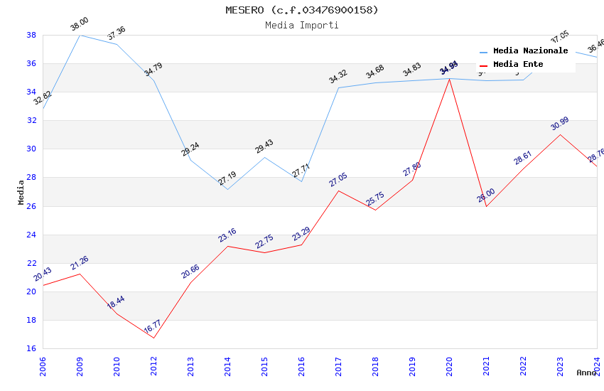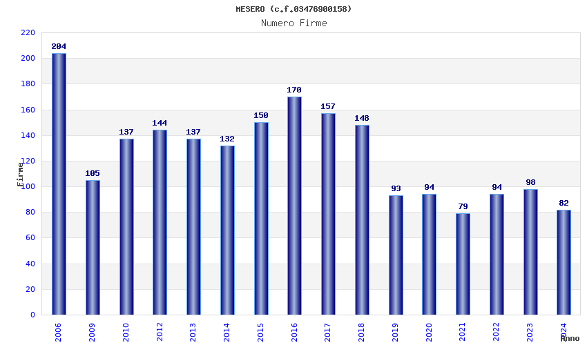 | Anno | Firme | Importi | Media | Naz. | Reg. | Prov. | Comu. |