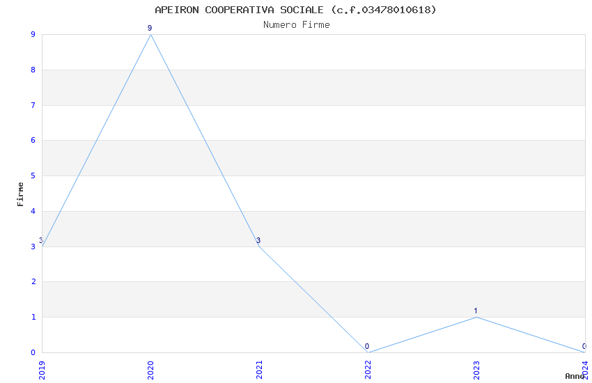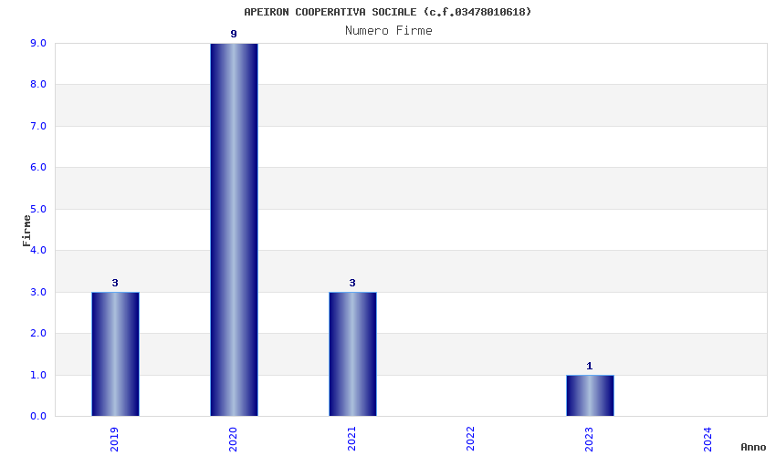 | Anno | Firme | Importi | Media | Naz. | Reg. | Prov. | Comu. |