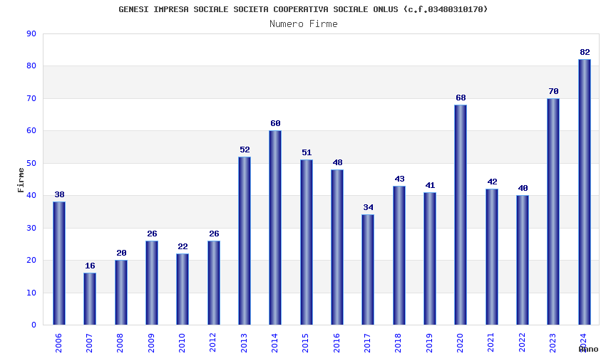 | Anno | Firme | Importi | Media | Naz. | Reg. | Prov. | Comu. |