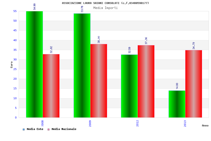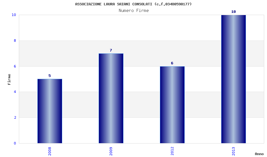 | Anno | Firme | Importi | Media | Naz. | Reg. | Prov. | Comu. |