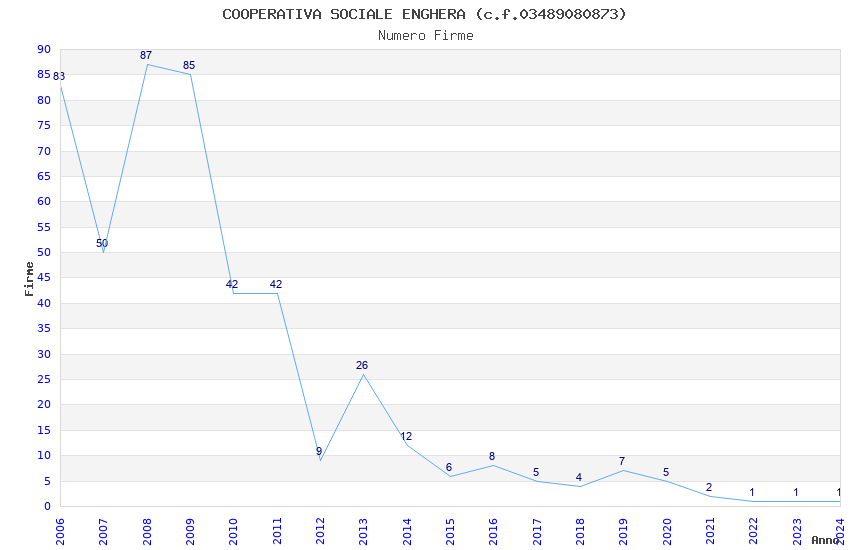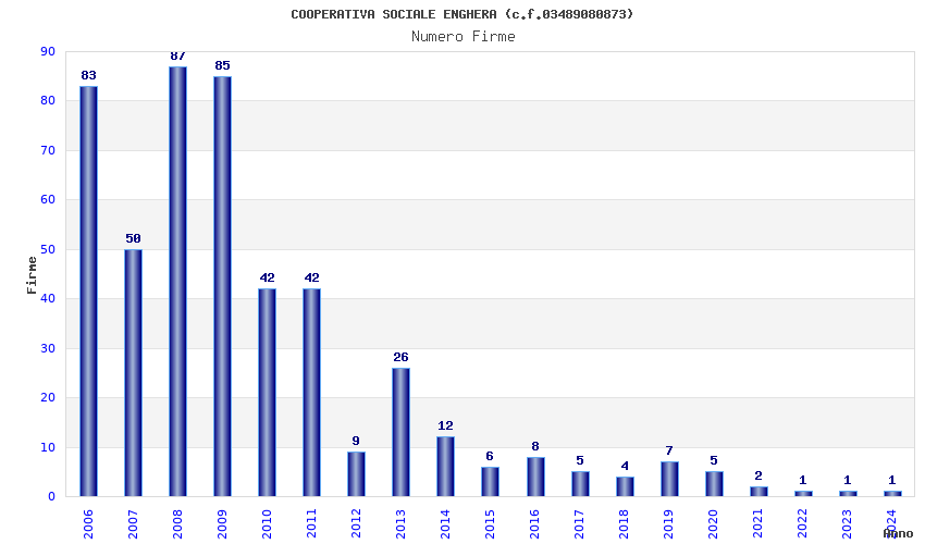 | Anno | Firme | Importi | Media | Naz. | Reg. | Prov. | Comu. |