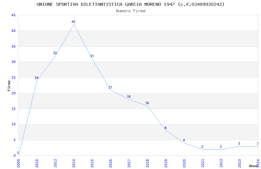 | 2014 | 42 | 2.656,69 | 63,25 | 18.131 | 1.725 | 311 | 13 |