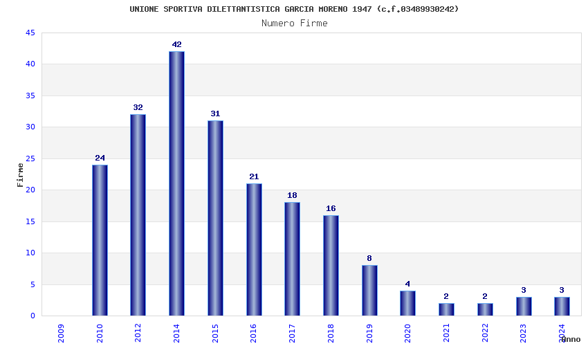 | Anno | Firme | Importi | Media | Naz. | Reg. | Prov. | Comu. |