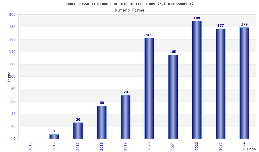 | Anno | Firme | Importi | Media | Naz. | Reg. | Prov. | Comu. |