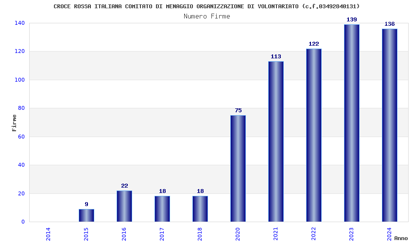 | Anno | Firme | Importi | Media | Naz. | Reg. | Prov. | Comu. |