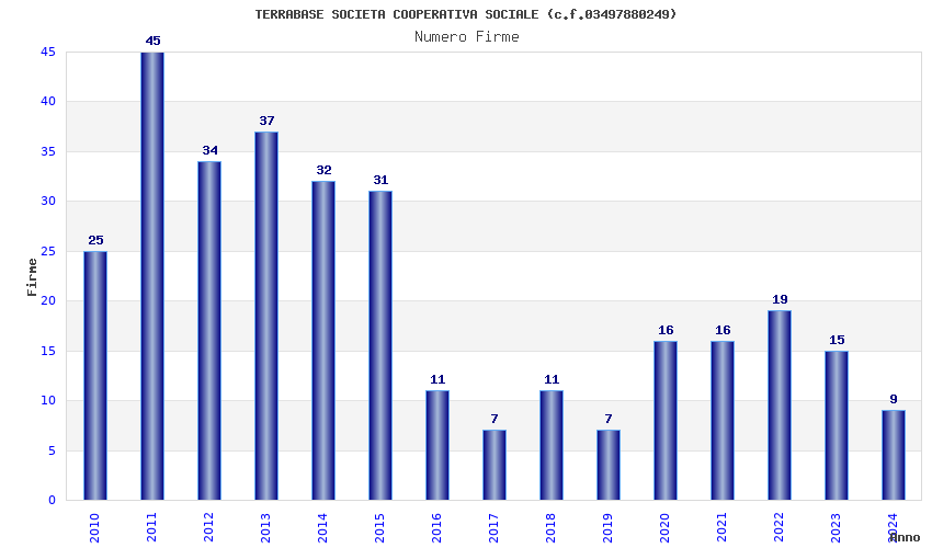 | 2011 | 45 | 1.131,15 | 25,14 | 19.523 | 1.706 | 305 | 101 |
