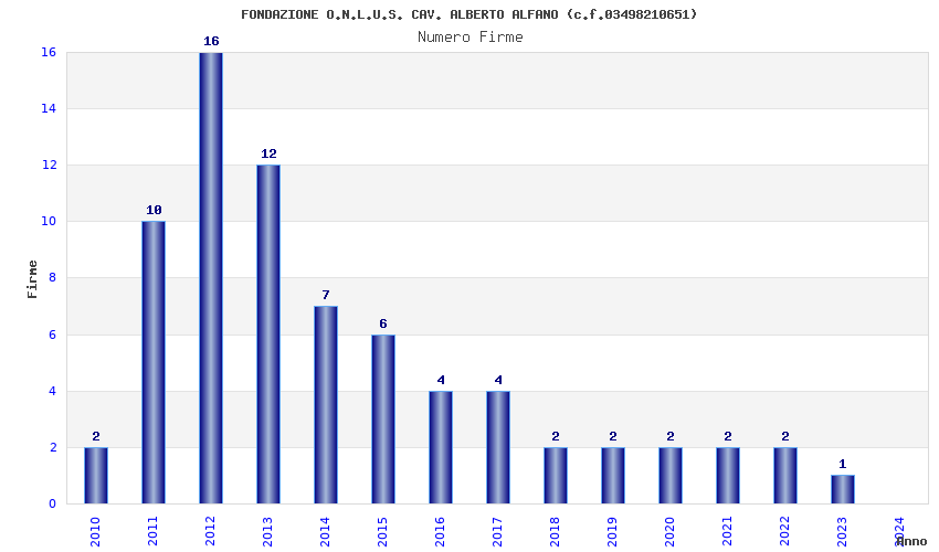 | Anno | Firme | Importi | Media | Naz. | Reg. | Prov. | Comu. |