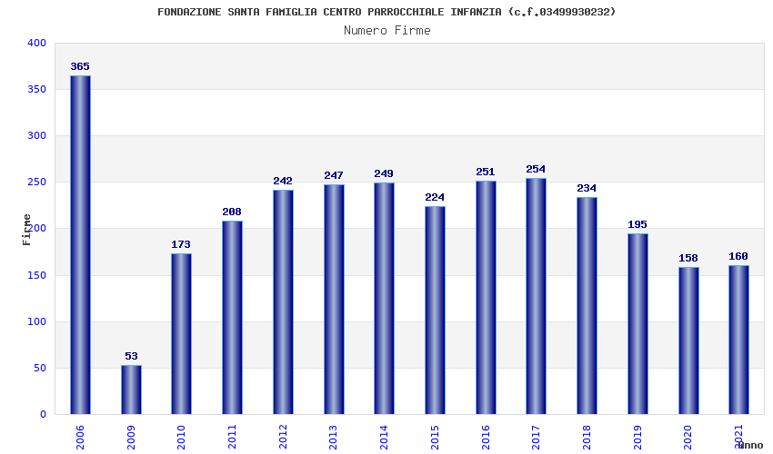 | Anno | Firme | Importi | Media | Naz. | Reg. | Prov. | Comu. |