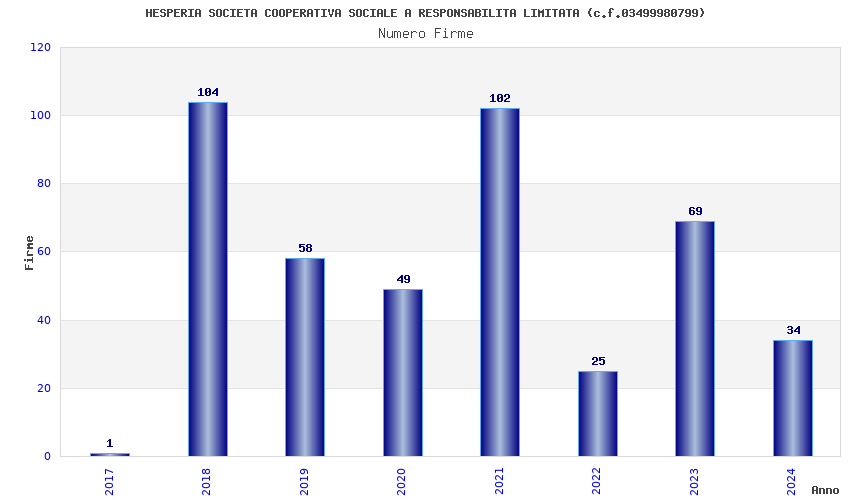 | Anno | Firme | Importi | Media | Naz. | Reg. | Prov. | Comu. |