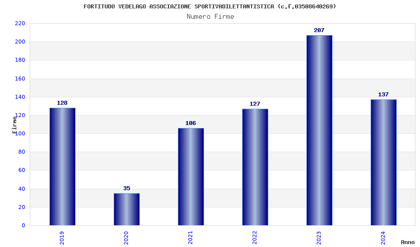 | Anno | Firme | Importi | Media | Naz. | Reg. | Prov. | Comu. |