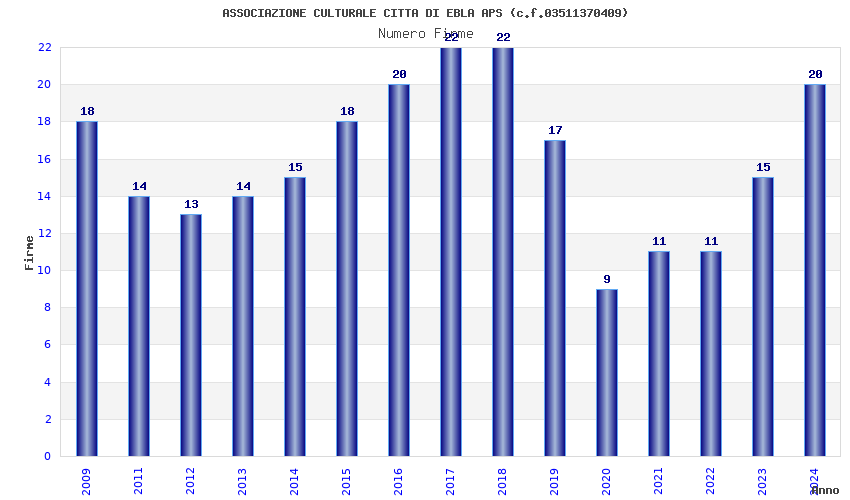 | 2018 | 22 | 598,96 | 27,23 | 42.703 | 3.808 | 390 | 144 |