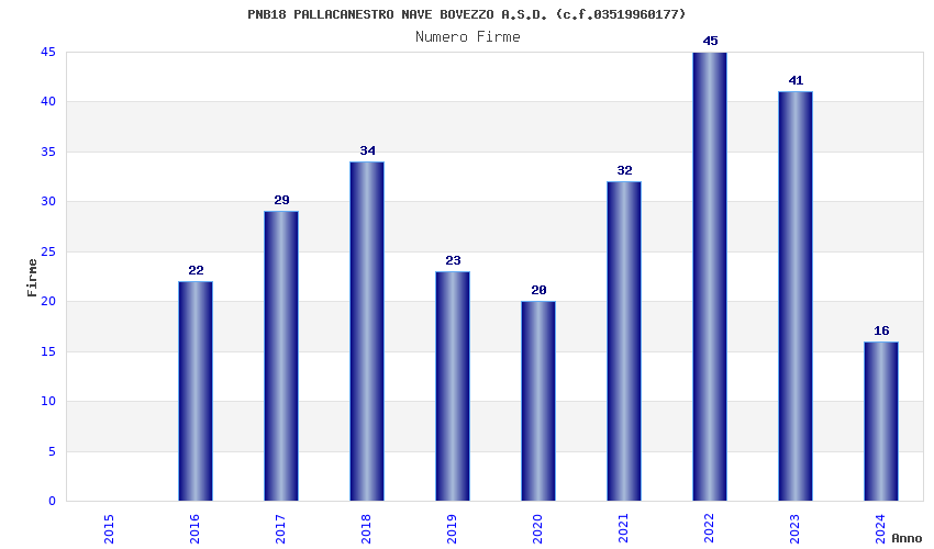 | Anno | Firme | Importi | Media | Naz. | Reg. | Prov. | Comu. |