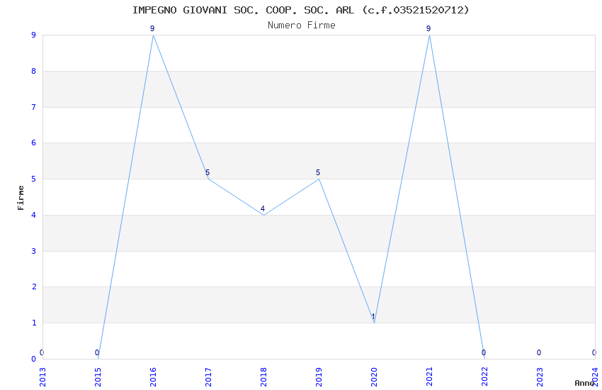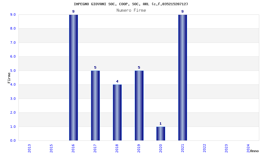 | Anno | Firme | Importi | Media | Naz. | Reg. | Prov. | Comu. |