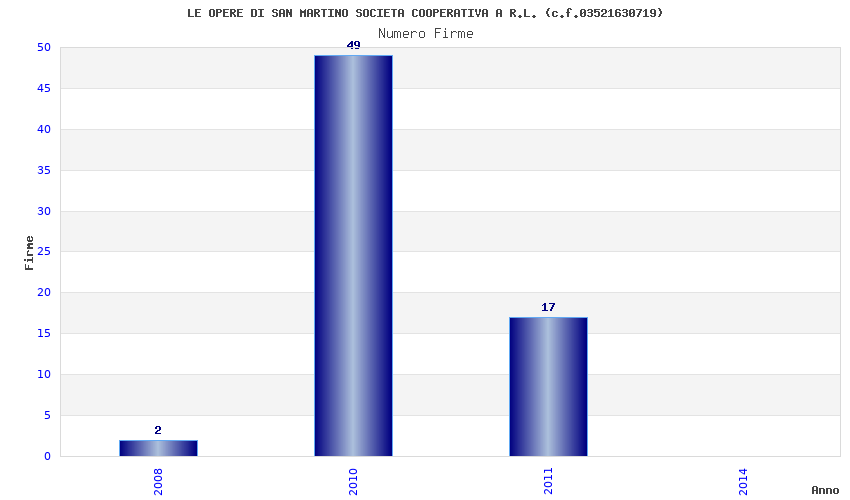 | Anno | Firme | Importi | Media | Naz. | Reg. | Prov. | Comu. |