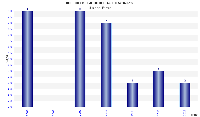 | Anno | Firme | Importi | Media | Naz. | Reg. | Prov. | Comu. |