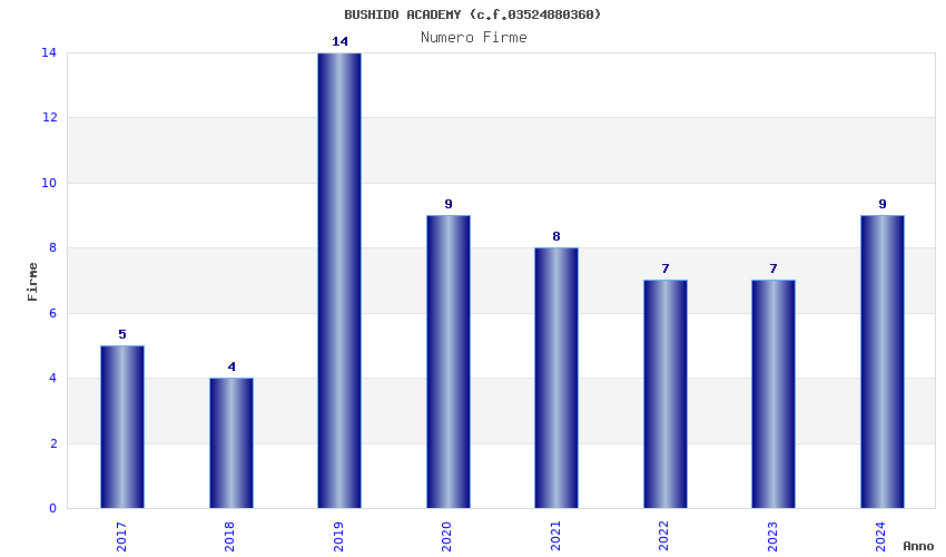 | Anno | Firme | Importi | Media | Naz. | Reg. | Prov. | Comu. |