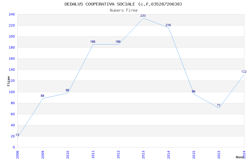 | 2013 | 233 | 3.692,69 | 15,85 | 11.541 | 644 | 353 | 170 |