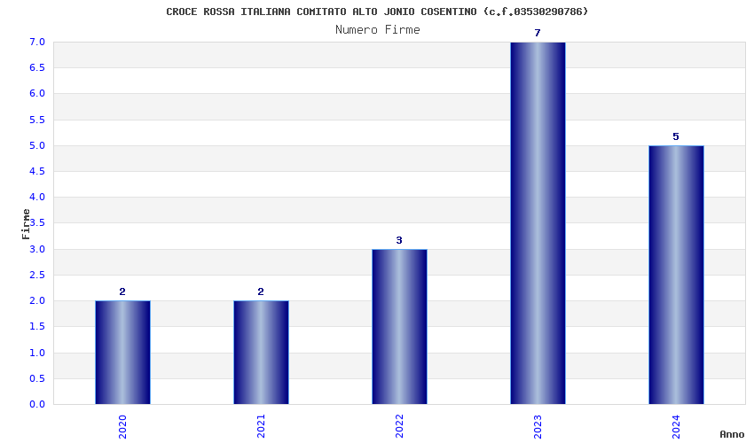 | Anno | Firme | Importi | Media | Naz. | Reg. | Prov. | Comu. |